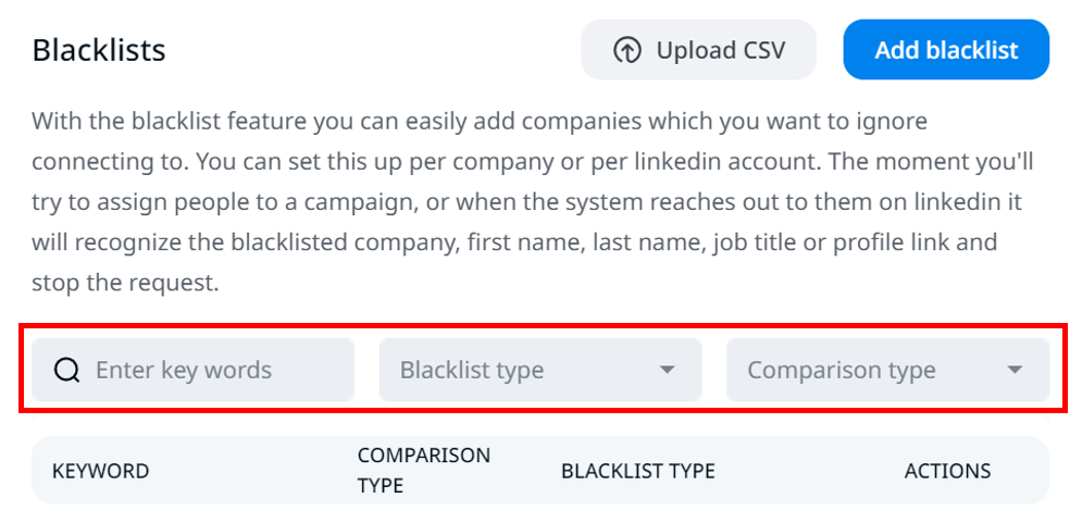 account: either manually upload a blacklist by clicking the 'Add blacklist'