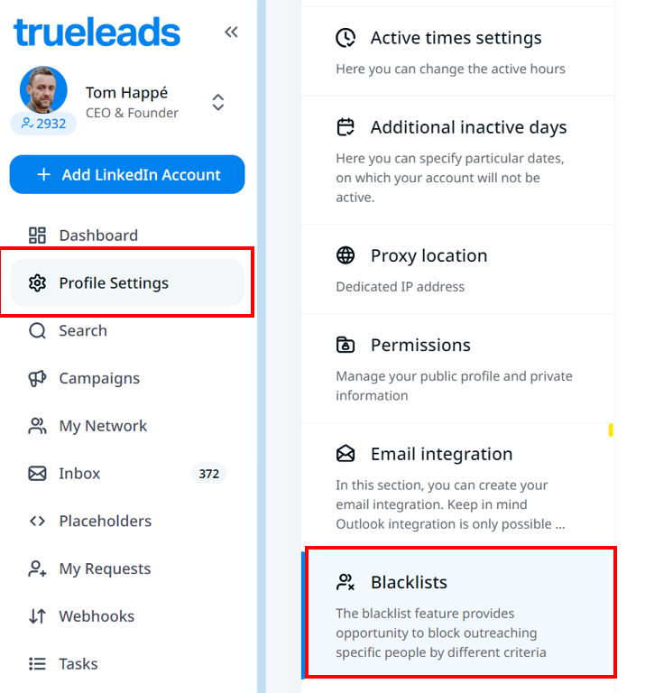 profiles, effectively pausing those leads. To remove them from the blacklist,