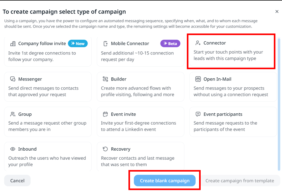 As you're aware, within Trueleads, you have the capability to establish a Connector Campaign employing diverse search options such as Basic, Sales Navigator, CSV, and Recruiter.