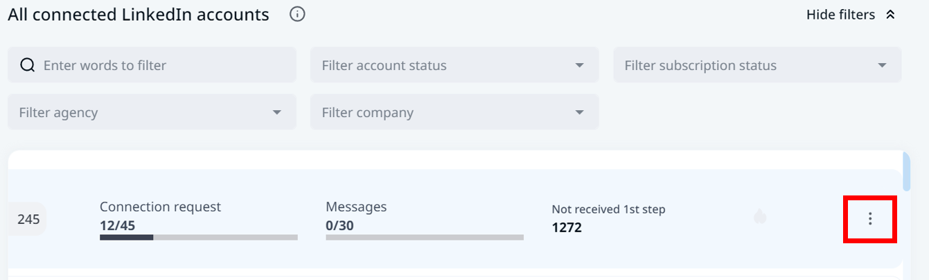 Locate the account for which you canceled the subscription, move to the right, and click on the three dots icon.