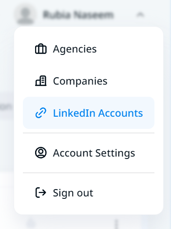After removing the subscription, go to the user menu and choose the LinkedIn accounts option.