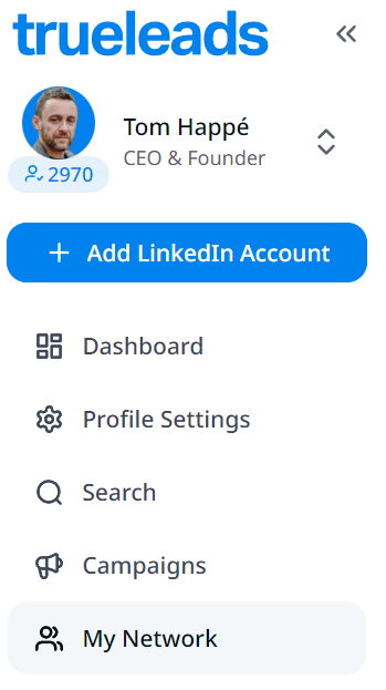 Navigate to Trueleads and access either the My Network or Campaigns page (This action can be performed on both).