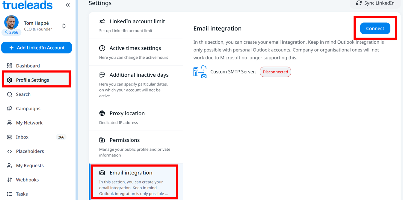 If you desire to link your Outlook email with Trueleads for the purpose of initiating automated email outreach, you can achieve this by adhering to the provided instructions.