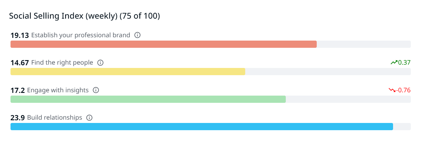 Your Social Selling Index (SSI) score is determined by four key elements: